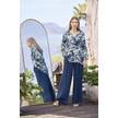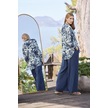 Schık Kadın Viskon Rahat Bol Paça Truvakar Kol Önü Düğme Baskılı Takım Saks