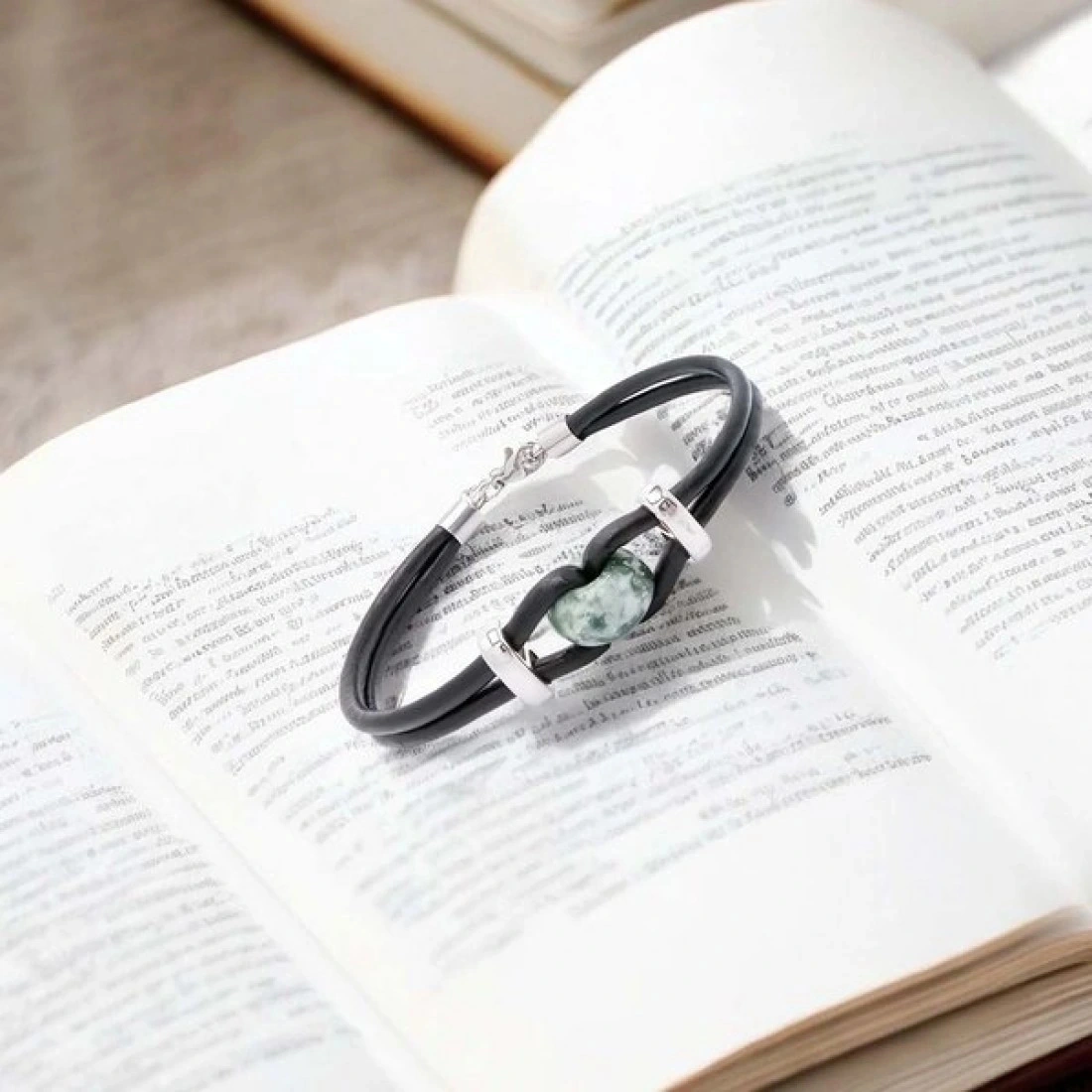 Moncuk Design Yeşil Jasper Doğal Taşlı Deri Ve Çelik Bileklik 33512b14d4 Çok Renkli