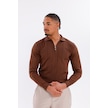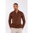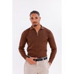 Monox Erkek Yarım Fermuarlı Polo Yaka Triko Kazak Kahverengi