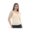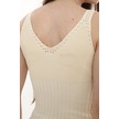 Monox Kadın Bluz V Yaka Gofre Nakışlı Yazlık Triko Atlet Bej
