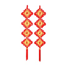 Monyee 2022 Yeni Yıl Kutlamaları İçin Kırmızı Flanel Çin Düğümü Ve Dört Kelimeli Mutluluk-fortuna Açık Radyo Dekorasyon Seti 1 Çift