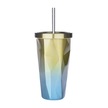 Monyee 500ml Çift Duvarlı Paslanmaz Çelik Termos Bardak, 6 Saat Isı Saklama, Kaçırmaz Kapağı Ve Pipet İle Seyahat Kahve Bardağı - Sarı-mavi Diamond Desen Sarı&mavi