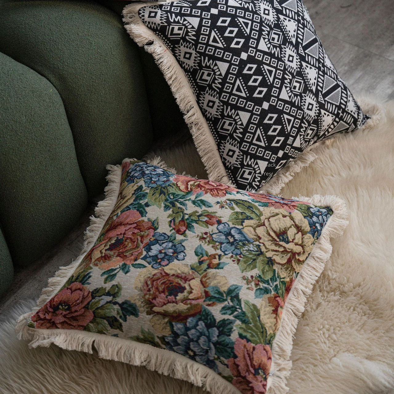 Monyee Amerikan Tarzı Flöral Desenli Koltuk Yastığı Kılıfı, Tassel Dokuma, 45x45 Cm, Koltuk-araba-yatak Uyumlu, Bez Yapısı Dolgu Yok Diğer