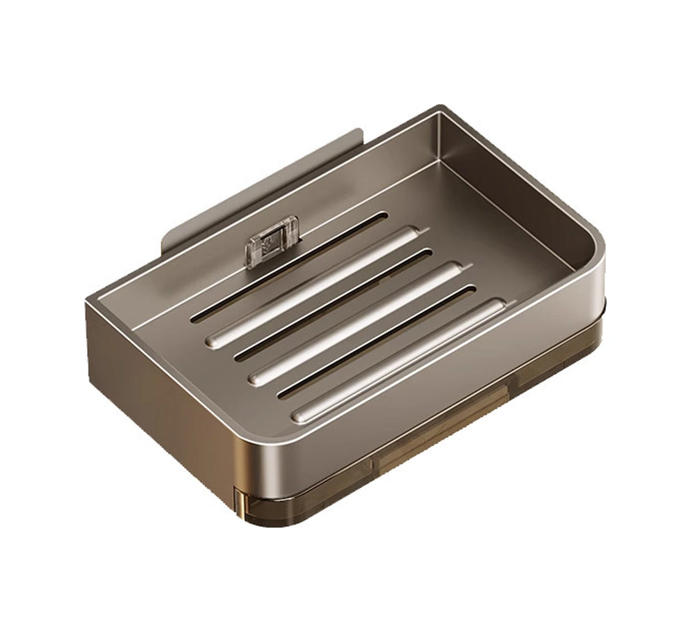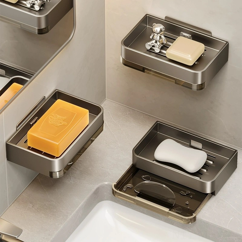 Monyee Duvarlı Sabun Kutusu Banyo İçin Delme Yok Çift Katlı Sularını Boşaltabilir Ev Kullanıma Uygun Sabun Tutucu Tungsten Gri - 1 Adet Diğer