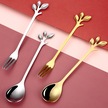 Monyee Ev İçin Altın Yaprak Desenli Paslanmaz Çelik Kahve Kaşığı - Tatlı Kaşığı Çatal Seti, Dayanıklı Ve Pratik Kullanım Altın