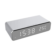 Monyee Gümüş Multifonksiyonel Led Ekranlı Akıllı Alarm Saat - Kablosuz Şarj, Zaman Ve Sıcaklık Gösterici