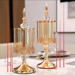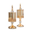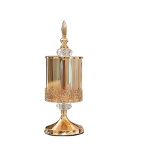 Monyee Modern Basit Stilde Metal Ve Kristal Cam Mumluk, Depolama Kavanozu, Dekorasyon - Fransız Altın, 29cm Büyük Boyut, Pembe Dantel Desenli, 3d Kesikli Kristal