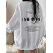 Moon Phases Afraid Kışlık Kalın Sweatshirt - Beyaz Baskılı Oversize Kalın Kışlık Bisiklet Yaka Beyaz