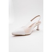 Moore Beyaz Şeffaf Arkası Açık Sivri Burun Kadın Topuklu Ayakkabı Beyaz