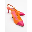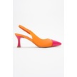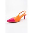 Moore Turuncu Fuşya Şeffaf Arkası Açık Sivri Burun Kadın Topuklu Ayakkabı Turuncu