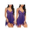 Mor Artı Boyutu Kadınlar İçin Yeni Sling Lingerie Derin V Dantel Babydoll Pijama Boudoir Kıyafetler Mor