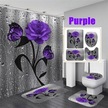 Mor Çiçek Açan Çiçekler Gül Kelebek Duş Perdesi Seti Su Geçirmez Banyo Klozet Kapağı Banyo Kaymaz Mat Halı Halı Banyo Dekor 4 A Mor