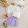 Mor Çocuk Giyim Kız Setleri Oymak Üst + Cami Üst + Haki Etekler 3 Adet Yaz Takım Elbise Setleri Kızlar Için 12M-6Y Çocuk Giysileri 12M-6Y Mor