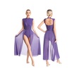 Mor Kadın Çağdaş Lirik Dans Elbise Bale Jimnastik Leotard Kolsuz Şifon Dökümlü Elbise Sahne Performansı Giyim Mor