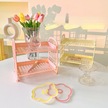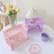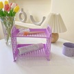 Mor Kawaii Çift Katmanlı Depolama Rafı Masaüstü Katlanır Makyaj Kutusu Raf Raf Kozmetik Depolama Bitirme Yurdu Banyo Mor