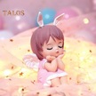 Mor Melek Kız Heykeli Tavşan Kulaklar Kek Topper Vinil Roman Karikatür Melek Kız Heykeli Masa Süsü Ev Gereçleri