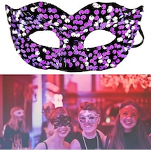 Mor Renk Arkadan Lastikli Pul Payet İşlemeli Balo After Parti Maskesi