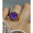 Mor Renkli Altın Kaplama Ayarlanabilir Gülen Yüz Yüzük Altın