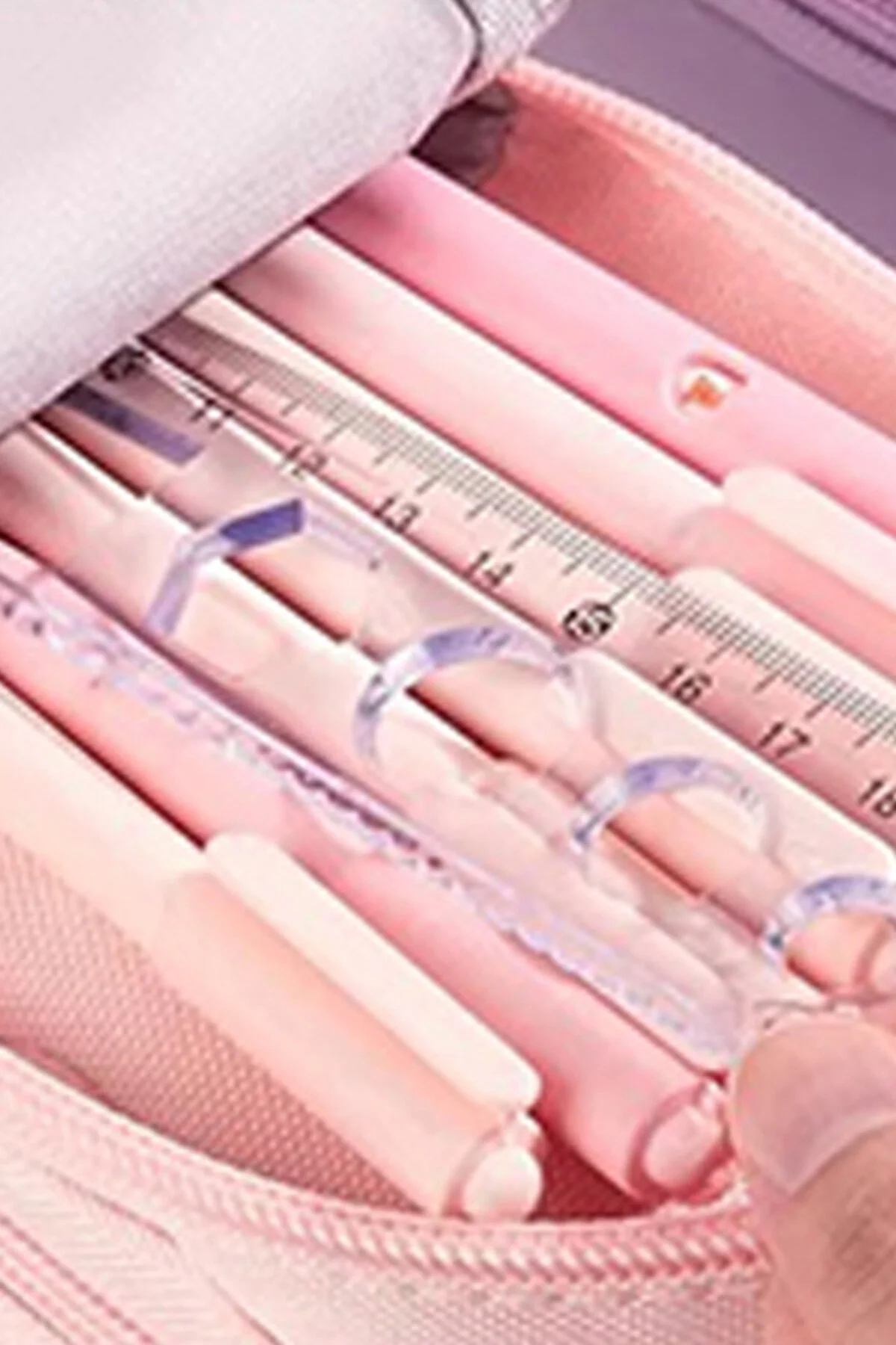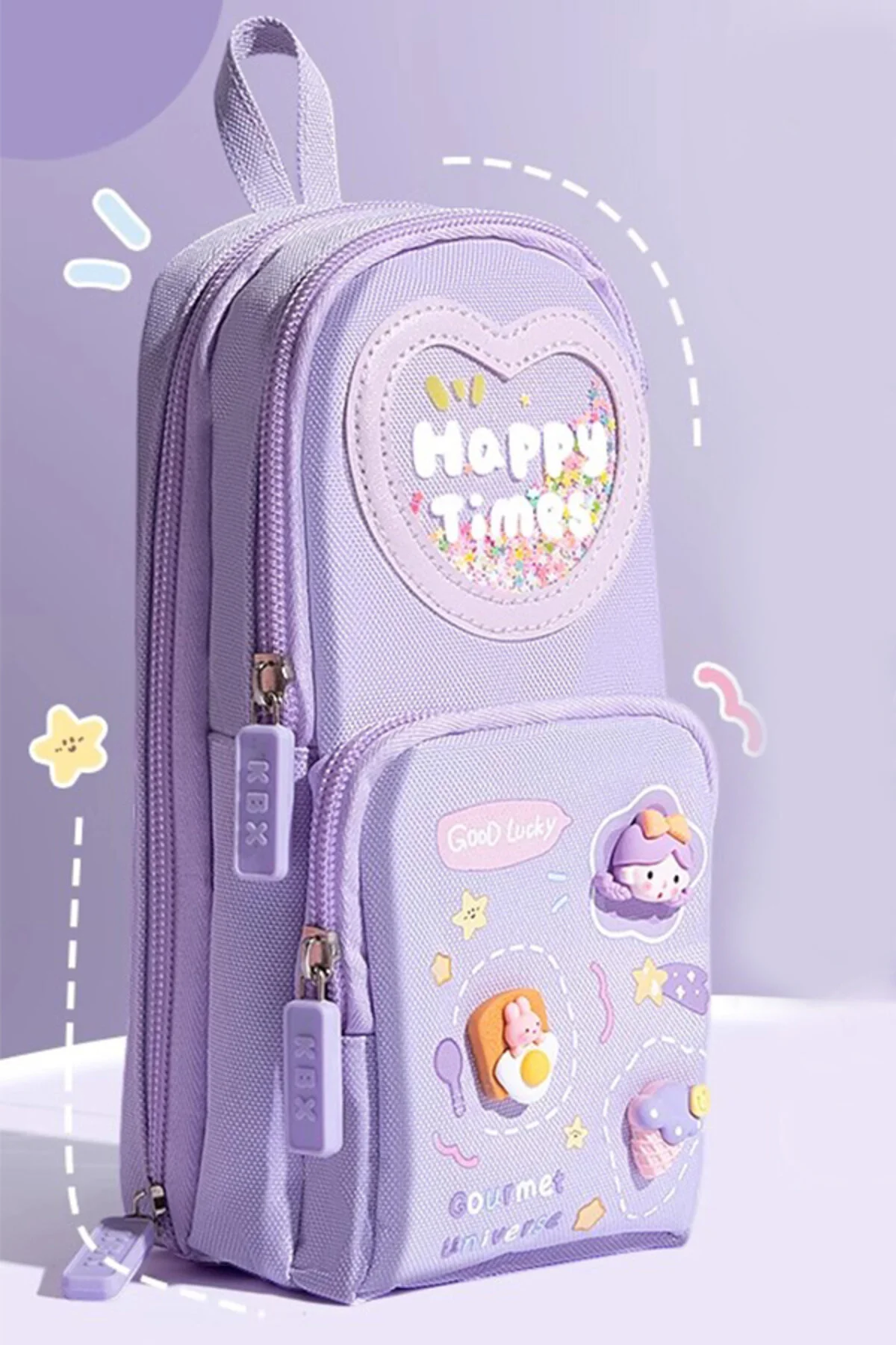 Mor Renkli Çanta Model Kalemlik, 3 Bölmeli, 6 Hücreli, Şık Ve Kullanışlı Kalemlik Mor