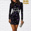 Mor Uzun Kollu Bodycon 3d Aşk Devre Baskı Elbise Kadın Mini Elbiseler Sonbahar Sıska Sıkı Parti Vestidos