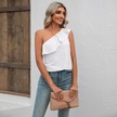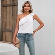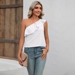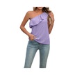 Mor Yaz Kadın Askı Fırfır Geniş Askılı Düz Renk Tank Tops Straplez Basit Peplum Slash Tops