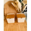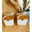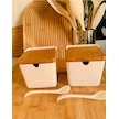 Morponi 2'li Bambu Standlı Bambu Kapaklı Porselen Kaşıklı Tuzluk Biberlik 260 Ml Gnl Ahşap