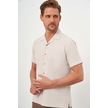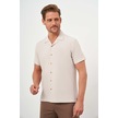Morven Erkek Bej Viscon Apaçi Yaka Regular Fit Kısa Kol Gömlek Bej