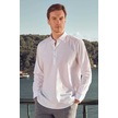Morven Erkek Beyaz Pamuk Baskılı Desenli İtalyan Yaka Regular Fit Gömlek Beyaz