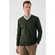Morven Erkek Haki Basic V Yaka Dynamic Fit Rahat Kesim Triko Haki