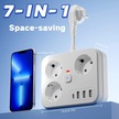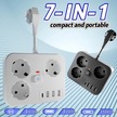 Motion003 7-in-1 Kompakt Güç Şeridi Siyah Açma Kapama Anahtarı Usb Bağlantıları Ac Ve T