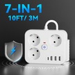 Motion003 7si 1 Arada Güç Şeridi 3 Ac 3 Usb 1 Tip C Aşırı Yük Koruması Duvara Monte Beyaz 3.05 Metre