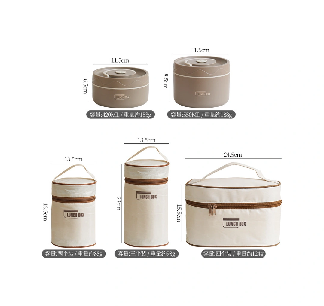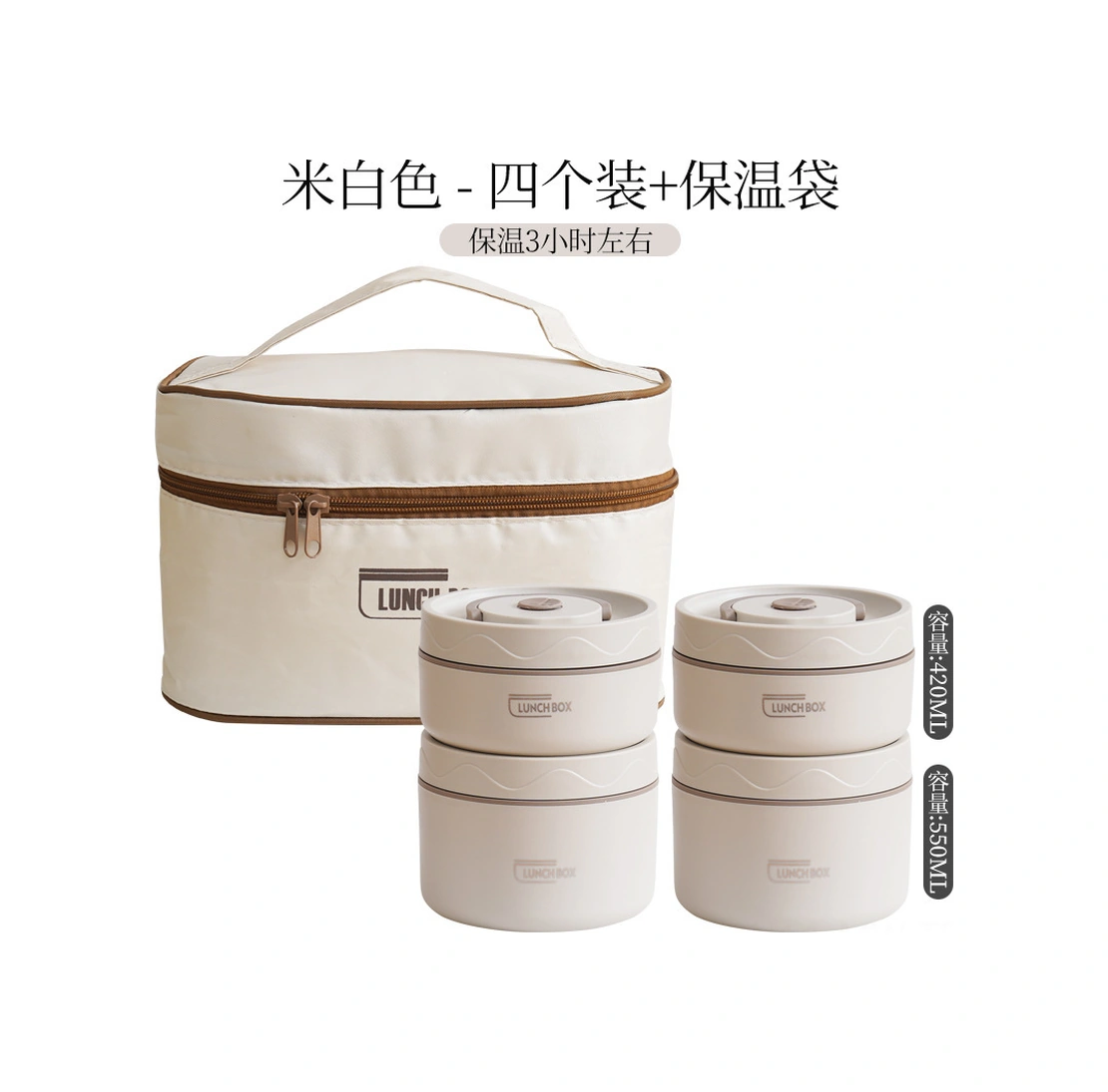 Moveevo 304 Çelik Isı Saklama Yemek Kutusu, Mikrodalga Uyumlu, Katlı, Öğrenci İçin Taşınabilir, Beyaz, 4 Adet + Isı Saklama Çantası Beyaz