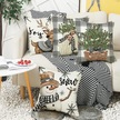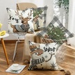 Moveevo 4 Adet Kış Dekoratif Yastık Kılıfı - 45x45 Cm, Geyik Ve Kar Tanrısı Desenli Noel Puf Kılıfları Seti Bej