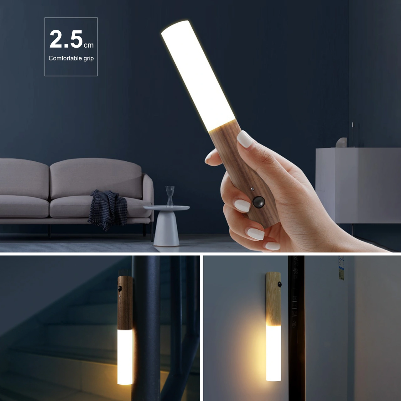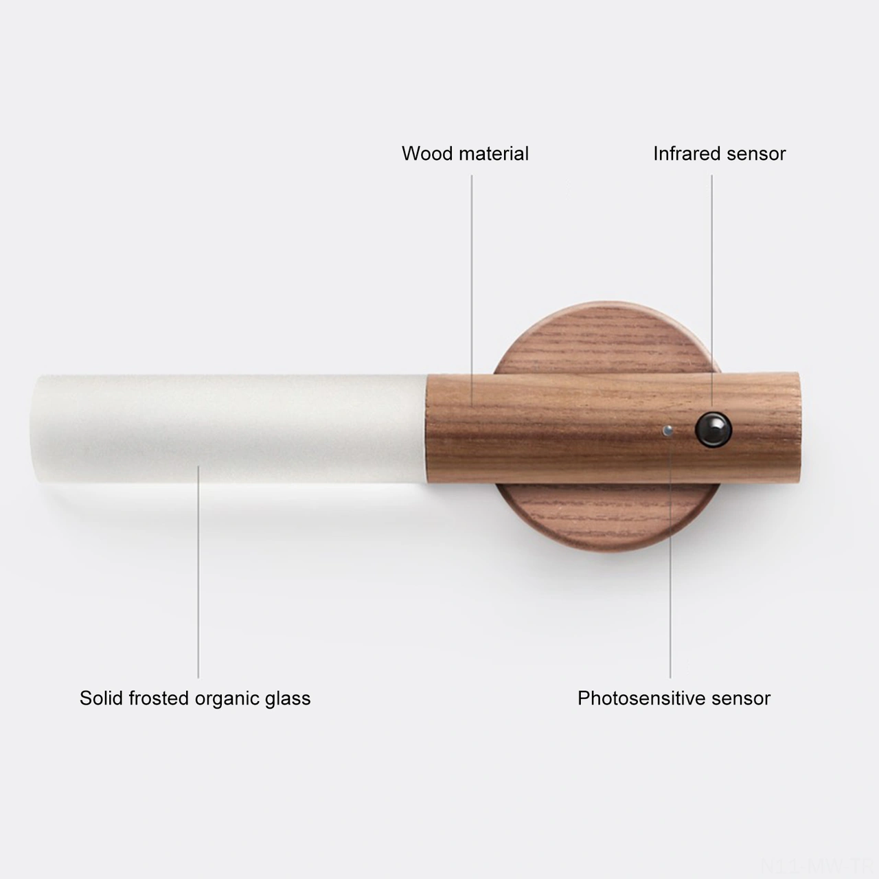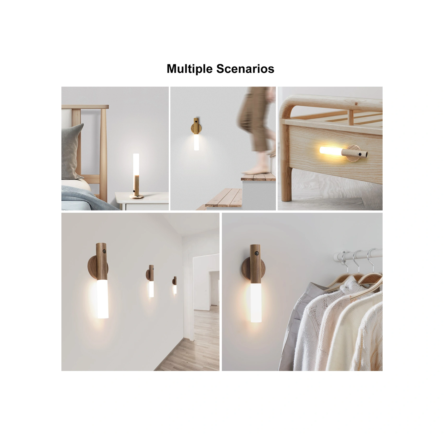 Moveevo Akıllı Vücut Algılama Gece Lambası, 4m Algılama Mesafesi, 15s Gecikmeli, 2700-3000k Sıcak Beyaz Işık, Ceviz Ağacı, Manyetik Tutma, Ev/merdiven Kullanıma Uygun Diğer
