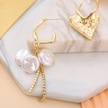 Moveevo Asimetrik Gümüş Kalp Modeli Barok Inci Tassel Küpe, Günlük Ve Bayram Giyimleri İçin Şık Dekoratif Aksesuar Gold