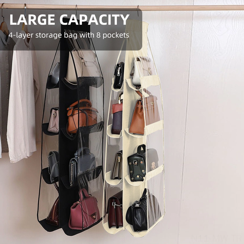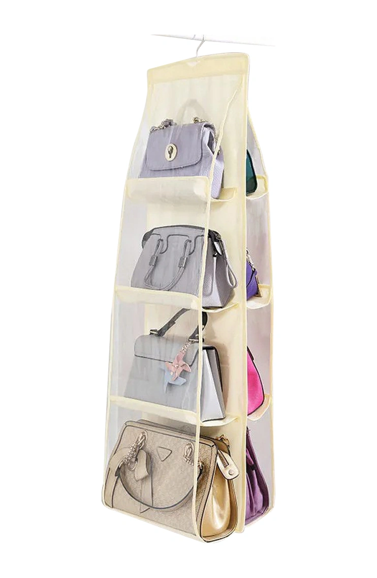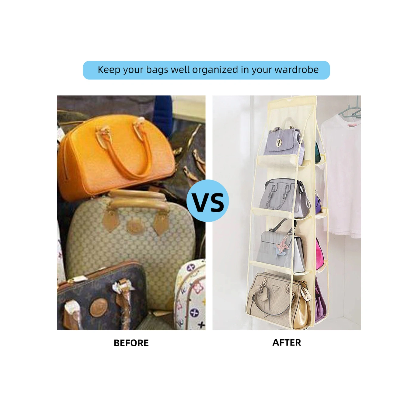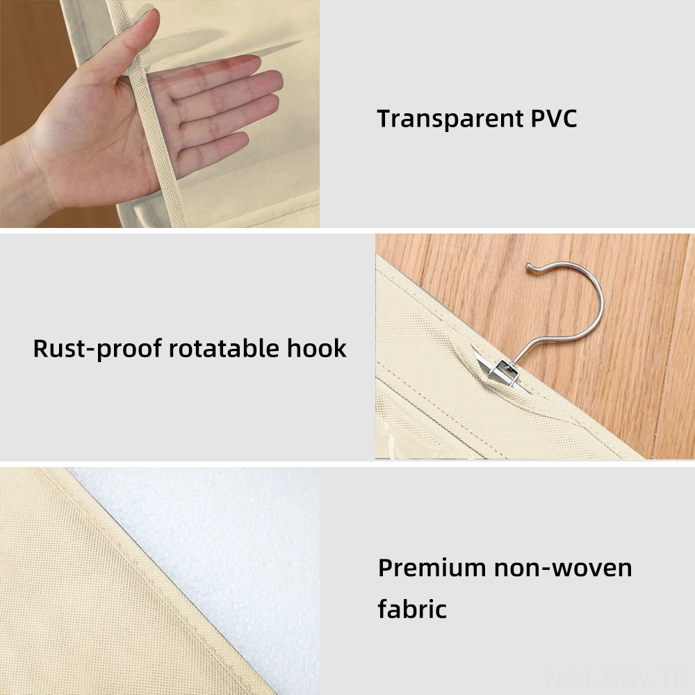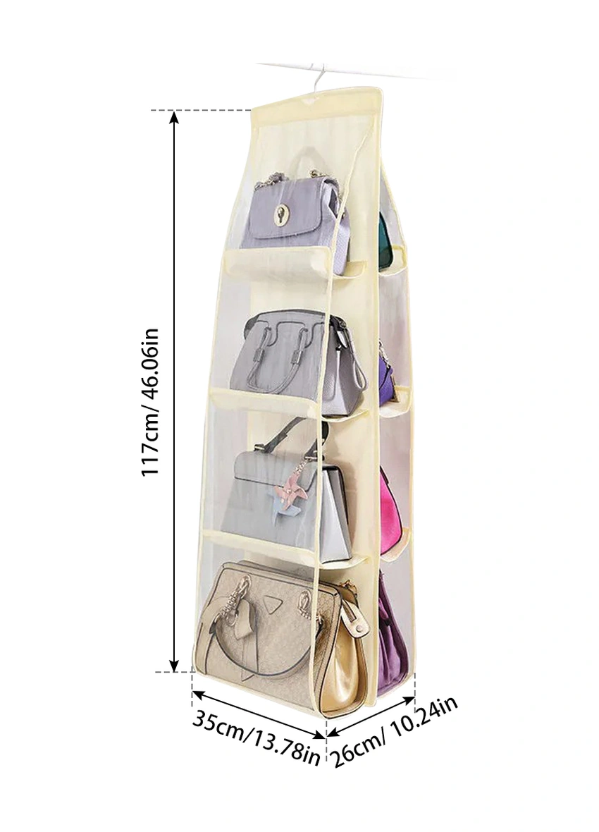 Moveevo Bej 4 Katlı 8 Cepli Çanta Düzenleyici, Növen Kumaş & Pvc, Döner Kanca, Görünür Tasarım, Dolap/kapı Asılı Ev Çanta Saklama Çantası Bej
