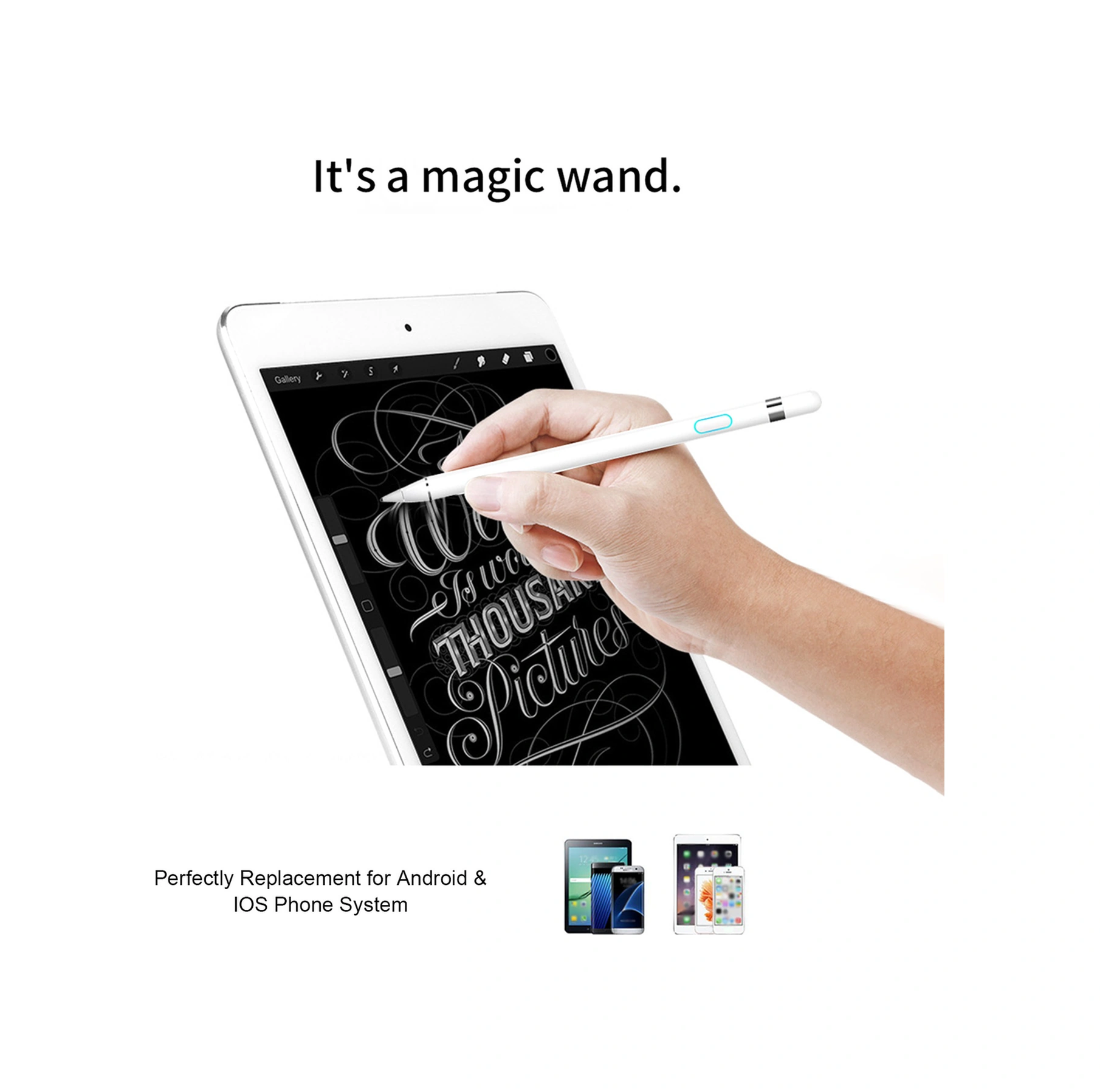 Moveevo Beyaz 1.45mm Uçlu Şarj Edilebilir Dokunmatik Kalem - Android/ıos Uyumlu, 140mah Batarya, Pijamalı Ve Ekran Koruyucu