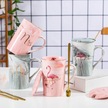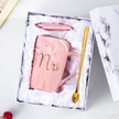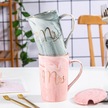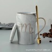 Moveevo Ev İçin Nikah/yıl Dönümü Hediyesi: 2'li Seramik Kupa Seti - Kapak Ve Kaşık Dahil, Gri Ve Pembe, Harf Baskılı, Yeniden Kullanılabilir Gri