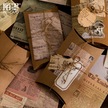 Moveevo Günlük Kullanıma Uygun Ev Dekorasyon Araçları - Vintage Koleksiyon Dizisi Mantar, Kelebek, Ay Şekli 30 Adet 12 Farklı Desenli El Kitabı Sticker Seti Kaki