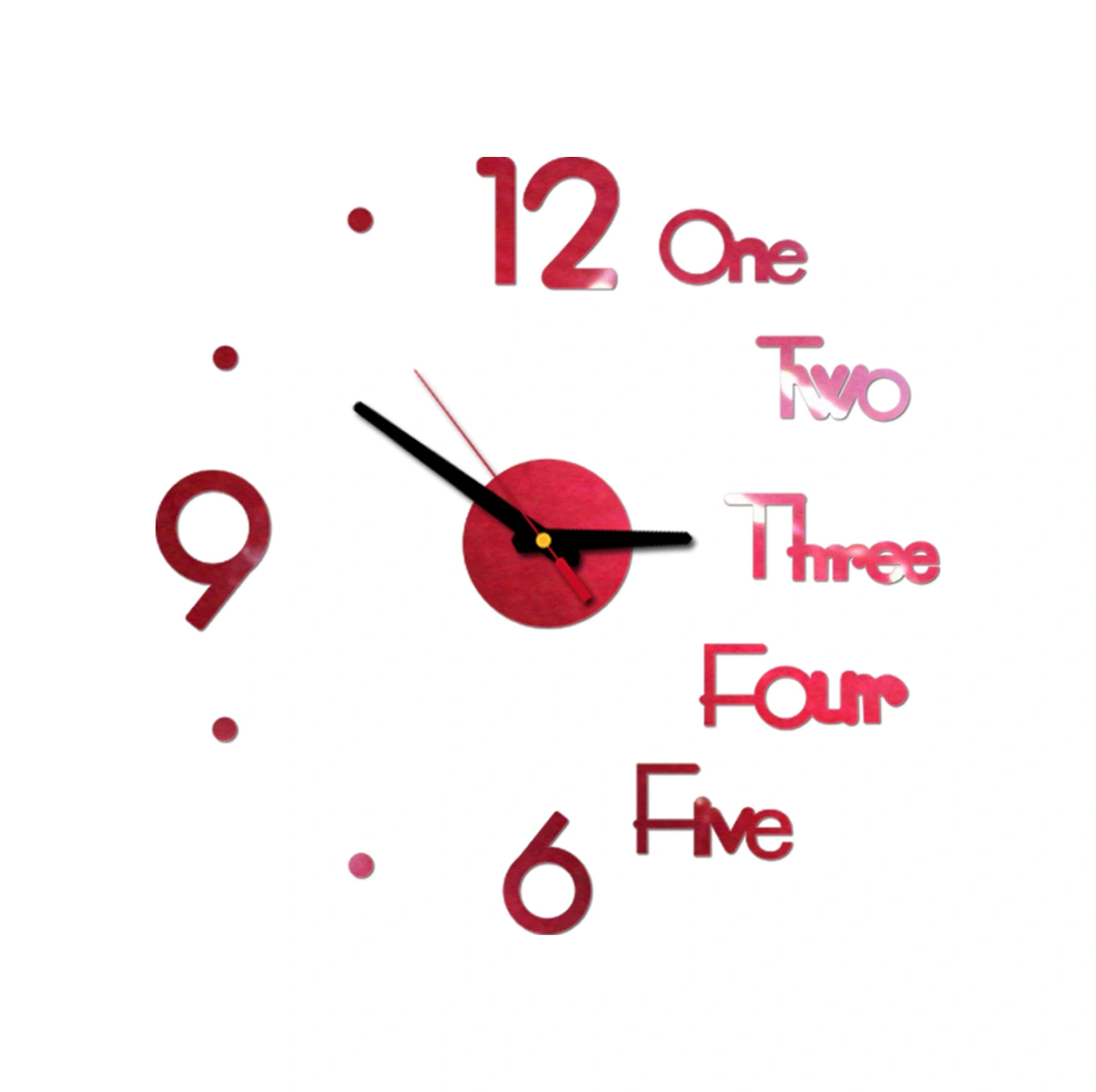 Moveevo Kırmızı Akrilik 3d Duvar Saati - Sessiz Tasarım, Özelleştirilebilir, Ev Ve Ofis İçin Otomatik Yapışkan Duvar Dekoru Çok Renkli