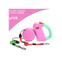 Moveevo Küçük Köpekler İçin Çift Başlı, Tutanaklanmayı Önleyen Otomatik Genişleyen Dayanıklı Taşıma Kordonu Pembe