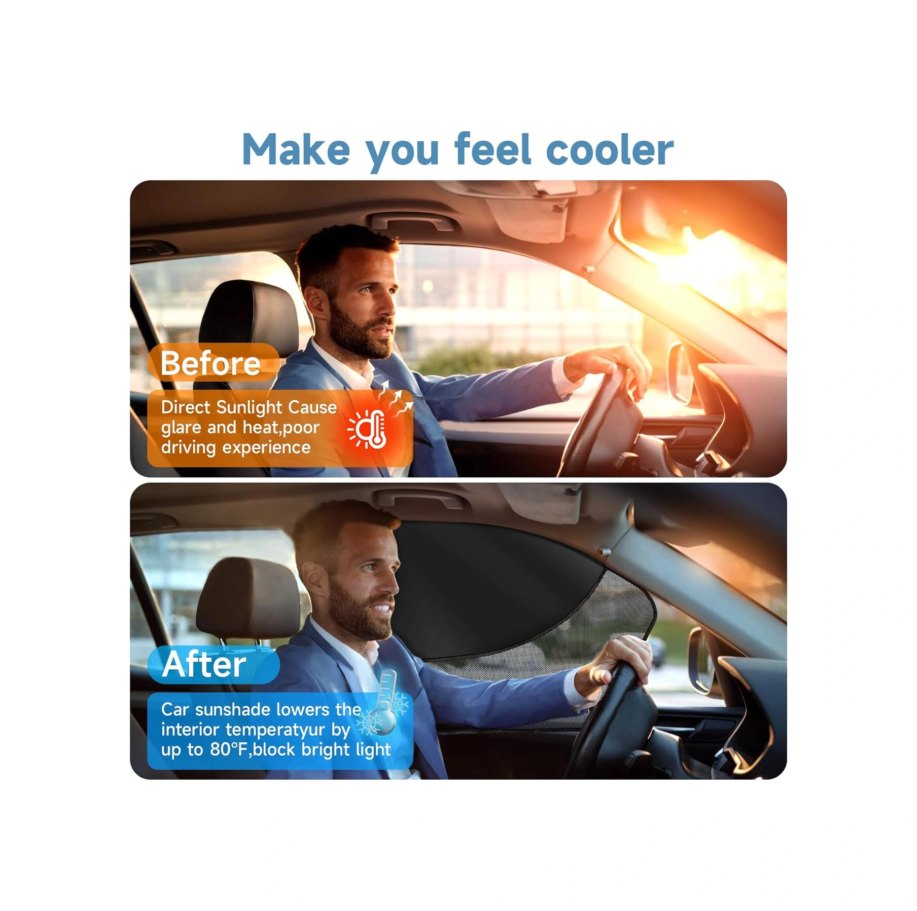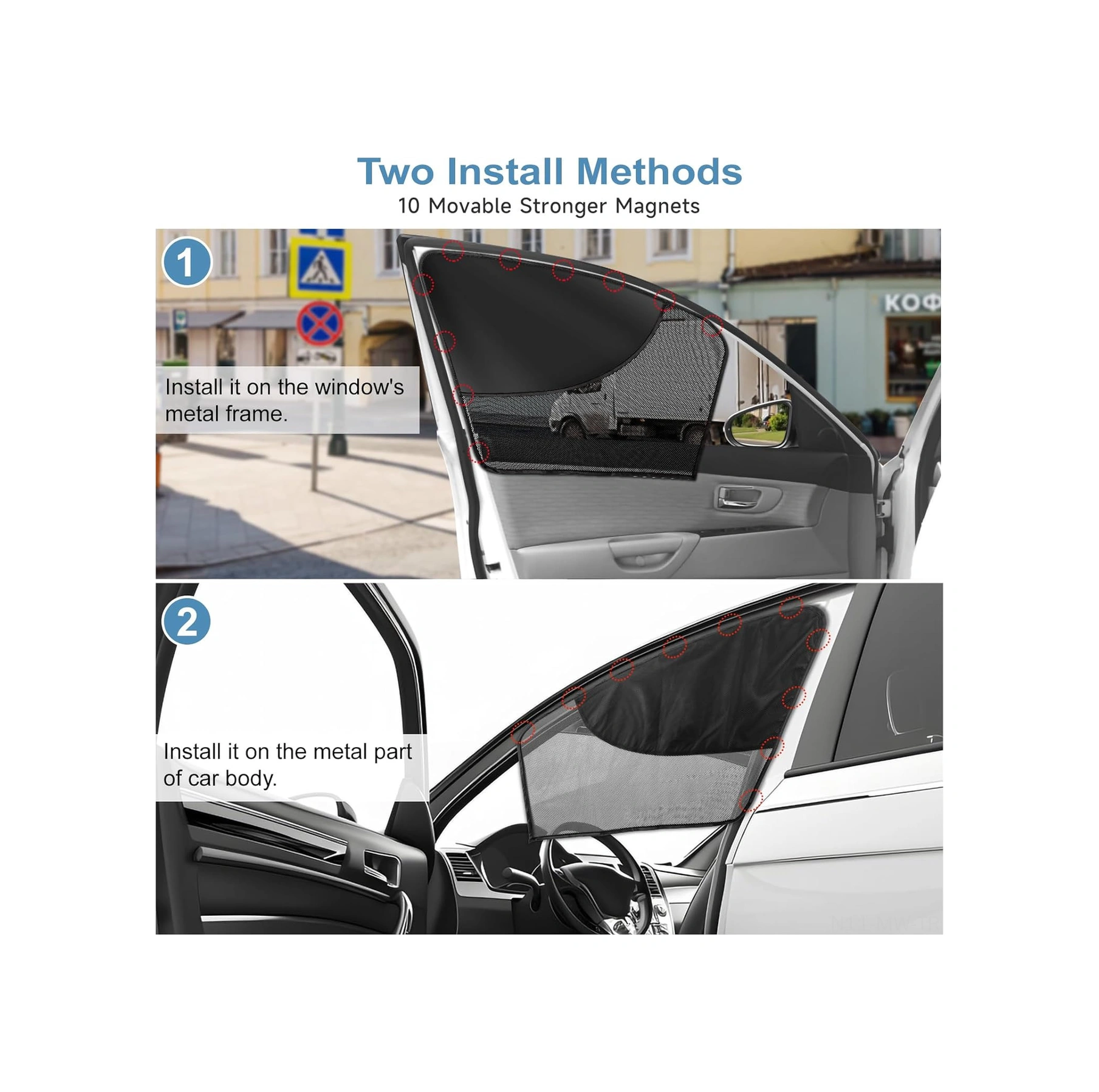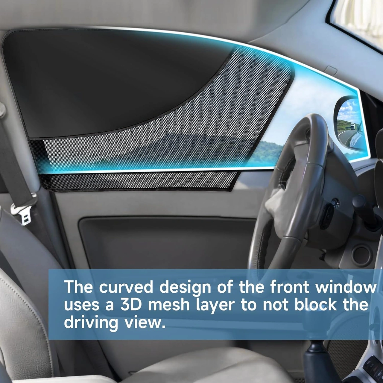 Moveevo Oto Cam Güneşlik: İki Katlı Mesh + Opak Kumaş, Manyetik Tutma, Uv Engelleme, Isı Yalıtımı - Sürücü + Arka Koltuk Seti