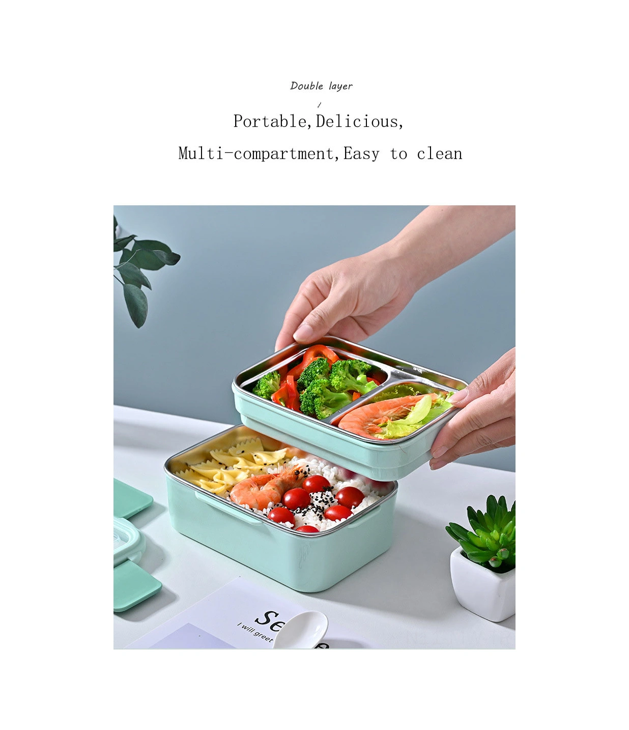 Moveevo Pembe Çift Katlı Isı Saklayan Paslanmaz Çelik Yemek Kutusu - Öğrenci Ve Çalışanlar İçin Taşınabilir 1.1l Bento Seti Çok Renkli