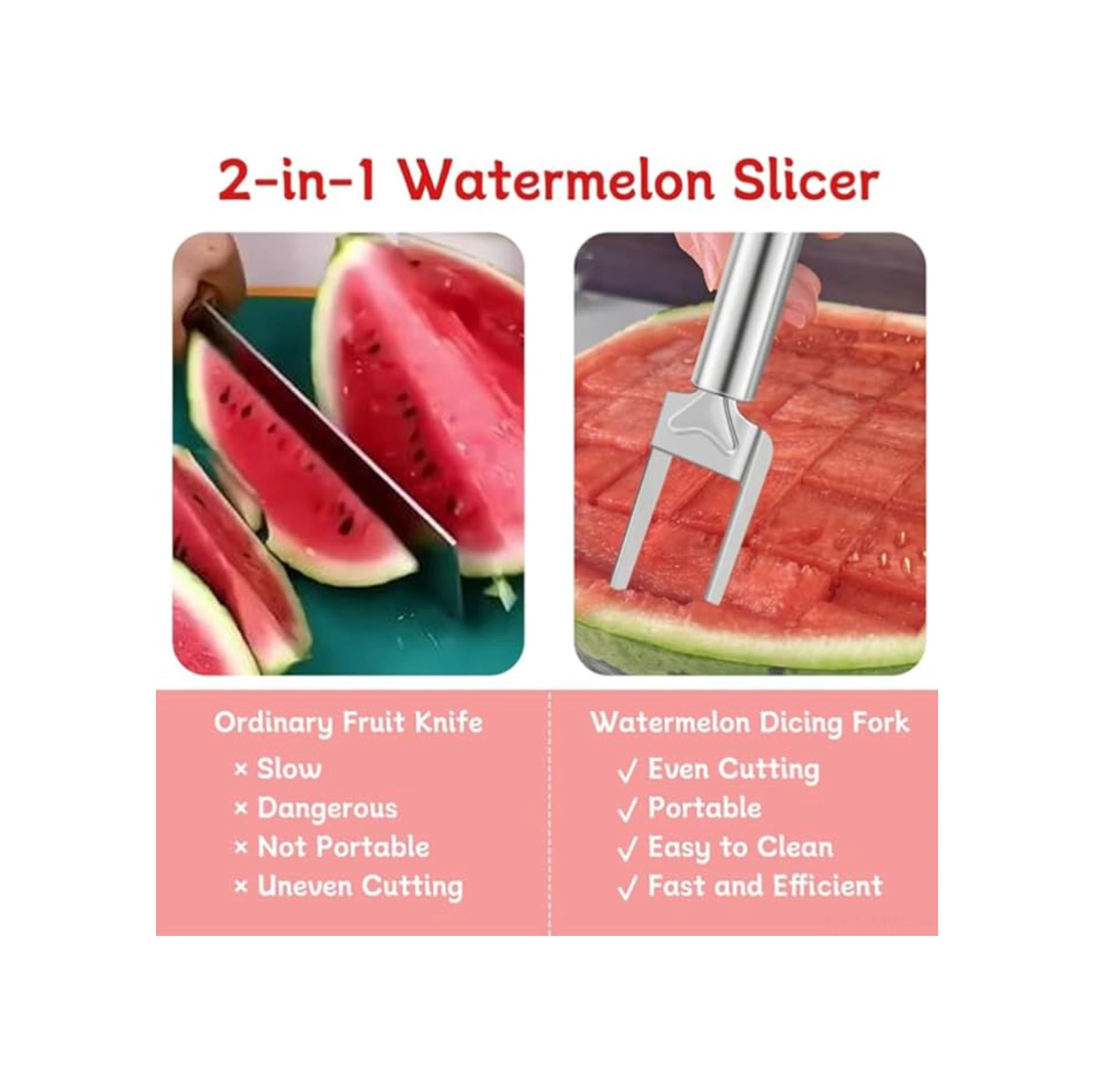 Moveevo Stainless Steel Meyve Dilimleyici Seti - 2 Adet Çift Uçlu Kırma Ve Dikme Aleti, Elma Karpuz Kesici Araçları Gümüş