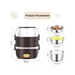 Moveevo Stoksel Çelik Isıtmalı Termos Lunch Kutusu - 2 Kişilik Pişirme Isıtma Fonksiyonu - 220v Avrupa Şarjı - Ofis Çalışanları İçin Isı Tutucu Yemek Kutusu Açık Kahverengi