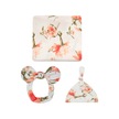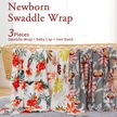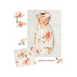 Moveevo Su5013 Bebek Kundak Üçlü Set Baskılı Kundak + Şapka + Saç Bandı 80 80cm Beyaz Şakayık Çok Renkli