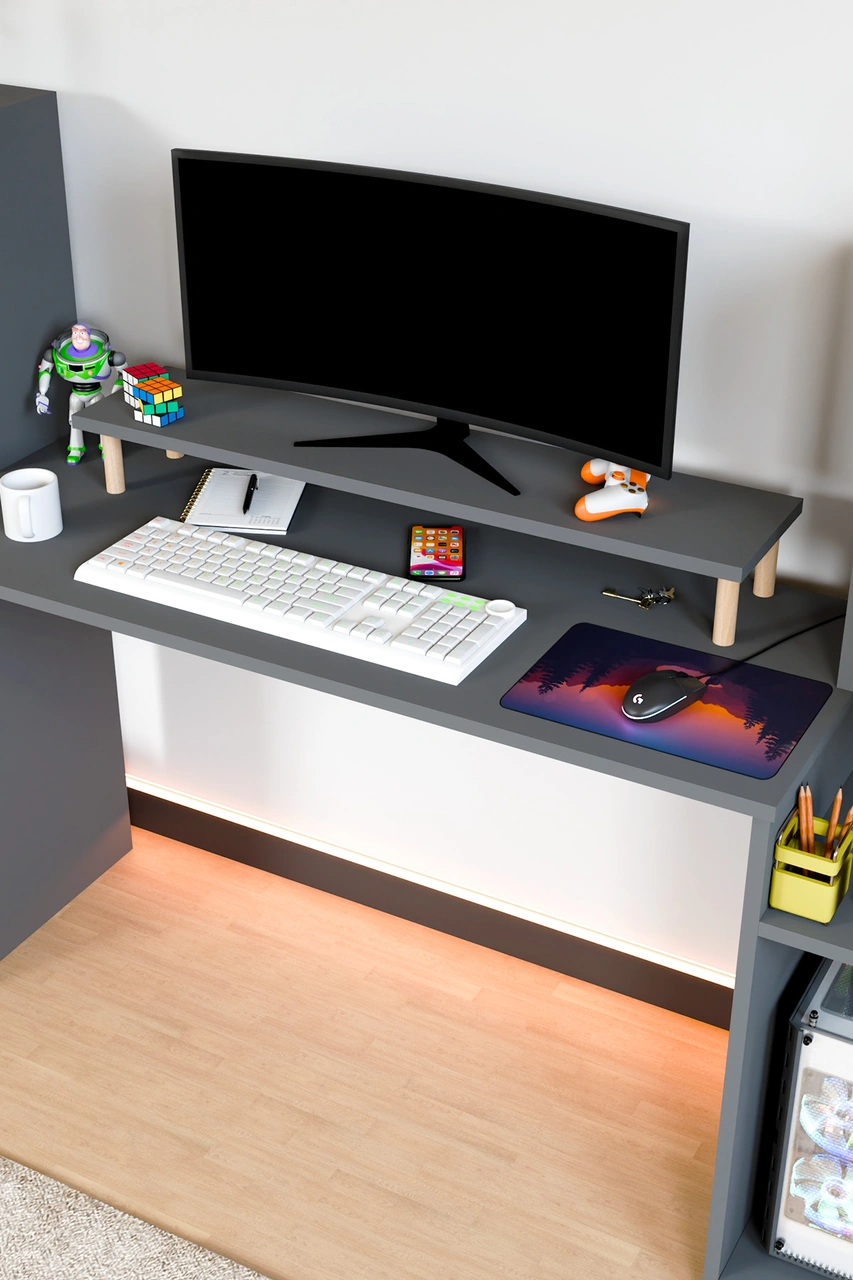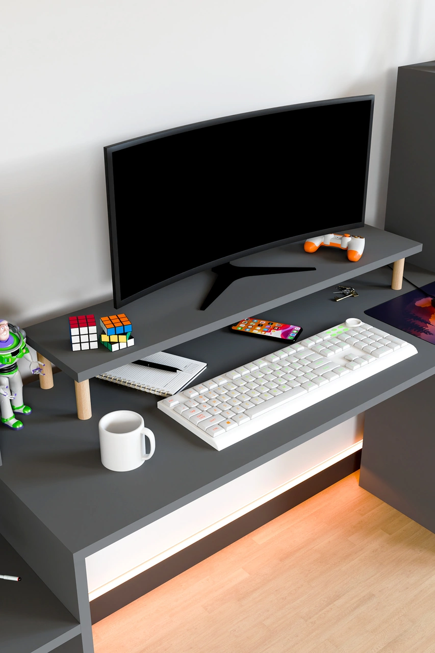 Moyo Monitör Yükseltici, Ekran Yükseltici, Masa Üstü Organizer Antrasit Gri