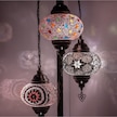 Mozaik 3'lü Lambader Büyük Boy Cam Küreli Mozaik El İşlemesi Otantik Lambader