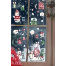 MSticker Yılbaşı Kardan Adam Ve Evleri Çocuk Odası Cam Duvar Sticker Seti