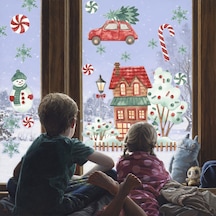 MSticker Yılbaşı Karlı Ev Ağaçlar Yeni Yıl Süsleri Çocuk Bebek Odası Sticker Seti